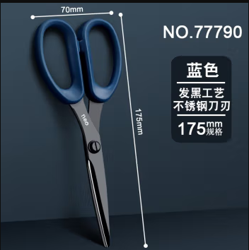 • 得力(测试用) 不锈钢剪刀 五颗松1664246616 剪刀 家用办公黑刃锋利美工剪子裁缝剪 77790丨蓝色丨中号-175mm
